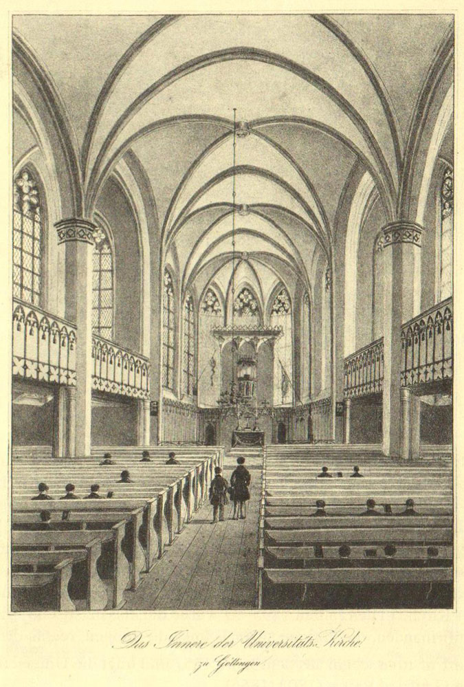 Letzte Woche hatte ich viel zu thun; außerdem daß ich im Kränzchen bei Lücke die Reihe hatte, eine Stelle aus dem griechischen N. Test. ins Latein zu übersetzen und lateinisch zu erklären, hatte ich als Theilnehmer des von den Proff. Ehrenfeuchter und Redepenning geleiteten königl. homiletischen Seminars am letzten Samstag in der Universitätskirche hier zu predigen, was zwar um so schwerer war als man das Konzept nicht vor sich haben darf, aber doch Gott Lob gut ablief und wobei ich bei aller Demuth doch gestehen darf, uns Schweizern keine Unehre gemacht zu haben.