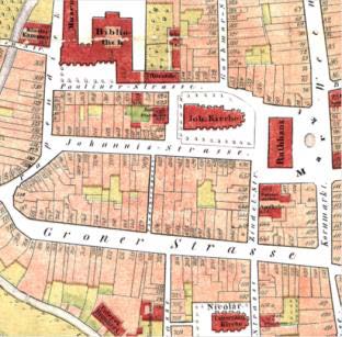 Bevor ich nun Euch von der Stadt, ihrer Umgebung, dem Leben und den Sitten der Bewohner, dem Studentenleben etc. berichte, glaube ich mehr Euren Erwartungen zu entsprechen, wenn ich Euch eine kleine Schilderung unseres Lebens und Befindens hier gebe. Wir wohnen also bei Herrn Grube an der Gronerstraße, einer der Hauptstraßen der Stadt. Unsere Hausleute sind recht ordentliche, alte äußerst gefällige und freundliche Leutchen, haben einen stillen Sohn und eine bestandene erfahrene Magd, die das ganze Hauswesen rüstig versieht. Wir haben noch keine Spur von Uebervortheilung, wie es hier bei Philistern (Nichtstudenten) den Studiosis gegenüber oft geschieht, bei ihnen entdecken können. Als ich unwohl war, nahm sich meiner Frau Grube selbst mehr an als weiland Frau Scherb. So gut wir jedoch mit ihnen stehen, haben wir sonst durchaus nichts mit ihnen gemein und sind nicht im mindesten in ihren Familienzirkel eingeweiht, wie’s überhaupt bei Studenten hier eine große Seltenheit ist. Eben ein trauliches Familienleben ist es, was unsereiner hier vermißt, wenn er nicht in einzelne Familien eingeführt ist, was freilich oft auch vorkommt, bei uns aber nicht stattfindet. Wie jeder Studio, so haben auch wir jeder zwei Zimmer, ein größeres zum Studieren, Visite zu empfangen, Eßzimmer etc. und als Anhängsel ein kleines Schlafzimmerchen. Fast alle Häuser sind eigens so für die Studenten gebaut und eingerichtet, daß vorn hinaus dieß größere, hinten hinaus das Schlafzimmerchen geht. In unserm Hause sind 4 solche Zimmer, alle von Studenten besetzt. Ein Zimmer fürs miteinander zu nehmen, gienge deshalb nicht an, weil zum Schlafzimmer unmittelbar das Hauptzimmer gehört, im Schlafzimmer aber nie 2 Betten Platz haben und man daher wohl oder übel 2 Schlafzimmer und mit denselben die eng damit zusammenhängenden Hauptzimmer nehmen müßte. Die Zimmer unterscheiden sich im Preis nur in Beziehung auf die Ausstattung und die größere oder geringere Vornehmheit der Hauseigenthümer, und in dieser Beziehung haben wir uns natürl. nach der Decke gestreckt. Nichtsdestoweniger sieht es bei uns ganz wohnlich aus. Die Zimmer haben die Gestalt, nur nicht die Größe, wie die Stuben daheim im Pfarrhaus mit zwei Kreuzstöcken, die mit Storen und weißen Vorhängen versehen sind, und zwischen beiden ist der Spiegel unter welchem ein einfaches kirschbäumenes Toilettentischchen steht. Rechter Hand in der Ecke steht der Schreibtisch auf welchem ein Bücherschaft, links an der andern Wand eine Kommode mit Aufsatz. An der gleichen Wand nahe bei der Kommode ein nußbaumener Tisch und auf der andern neben dem Schreibpult ein – Ruhebett mit einem runden Tisch davor. Solche Sophas sind hier durchaus Mode und in den Zimmern gemeiner Leute findet man sie überall, so wie sie in jedem Studentenzimmer, das ich noch gesehen oder von dem ich gehört, nicht fehlen. Das Schlafzimmer dagegen enthält einen einfachen tannenen Kleiderschrank, Bett und Tischchen; daß die gehörige Zahl von Sesseln nicht fehlen, versteht sich von selbst. Der Preis der Wohnung für das halbe Jahr macht für ein Semester 3 Louisd’or, also bei weitem nicht so viel als man an den meisten Orten in Basel für ein ähnliches zahlen müßte; kam doch mein kleines Zimmerchen in der Spahlen jährlich auf 62 fr. Des Morgens um 6 oder ½ 7 bringt die Magd unser Kaffeservice herein, das wir uns haben anschnallen müssen, bestehend in 2 Tassen, einer Kanne, einem Milchtöpfchen, Löffelchen, Zucker- und Kaffebüchse. Wir bleiben auf dem Zimmer, die Hausleute müssen den Kaffe uns halb Pfund weis geröstet und gemahlen aufs Zimmer liefern, ebenso den Zucker zerstückelt. Mit der Kaffemaschine bringt sie zugleich auf glühenden Kohlen heißes Wasser, von dem wir nun abwechslungsweise oder wie es sich Einem schickt, den Kaffe uns bereiten und dazu Semmeln essen, wovon eine nur 4 Rappen (Pfennige) kostet. […] Um 7 Uhr gehen wir zu Ehrenfeuchter ins Colleg; von 8–11 repetieren wir zu Hause und studieren privatim, um 11 (bis 12 Uhr) geht’s zum ehrwürdigen alten Professor, Abt und Consistorialrath Lücke dessen Colleg über die christl. Sittenlehre mir das liebste ausgezeichnetste und belehrendste ist, das ich noch gehört habe, zumal da ich über diese so wichtige Disziplin der Theologie in Basel nie ein Colleg habe hören können und nie ein so gediegenes würde hören können. Um 12 Uhr kehren wir in unsere Wohnung zurück, wo die Magd mit unserem eigensten Besteck schon den Tisch gedeckt und das Essen vom Garkoche gebracht und aufgetischt hat. Wir lassen näml. das Essen wie hundert Andere ins Haus kommen, weil dieß das einfachste und billigste ist, wenn man nämlich etwas rechtes essen will. […] Die Kochkunst ist nun freilich hier eine ganz andere als bei uns und ich habe mich noch nicht an alle Speisen gewöhnen können. Von einer rechten Suppe weiß man hier nichts, statt dessen erhält man eine kräftige Fleischbrühe, in der sich etwas Reis, Makaroni, Knödel oder dergleichen findet, damit sie doch nicht gar zu dünn sei; viele Speisen werden mit ausgekochtem Spek geschmolzen, von Zwiebeln fast keine Spur, alles ist überfett und macht Einem oft halb übel, wenn mans nicht gewohnt ist, von Fleisch kommt Schweinefleisch hauptsächlich aufs Tapet. Wir hatten heut zu Mittag, Fleischbrühe an Makaronis, gebackene Kartoffeln mit Carchonaden (ganz kleine aber gute Fleischpfannküchlein), Schweinsbraten und Reisbrei nebst gekochten Zwetschgen. Diese Anzahl von Portionen oft mit einem Nachtisch, oft schlechter oft besser erhalten, war täglich, die Portionen sind dann freilich nicht so groß, daß man an einem Plättchen schon genug hätte; das ganze aber ist zu einem Preis (etwas über 2 ½ Bz) daß man damit zufrieden sein kann. Der Nachmittag geht bei den Collegen, Stunden, Privatstudien und etwa ausnahmsweise einem kleinen Spaziergang vor das Thor schnell vorüber. Am rathlosesten sind wir beim Nachtessen, das wir, wenn nicht der hungrige M